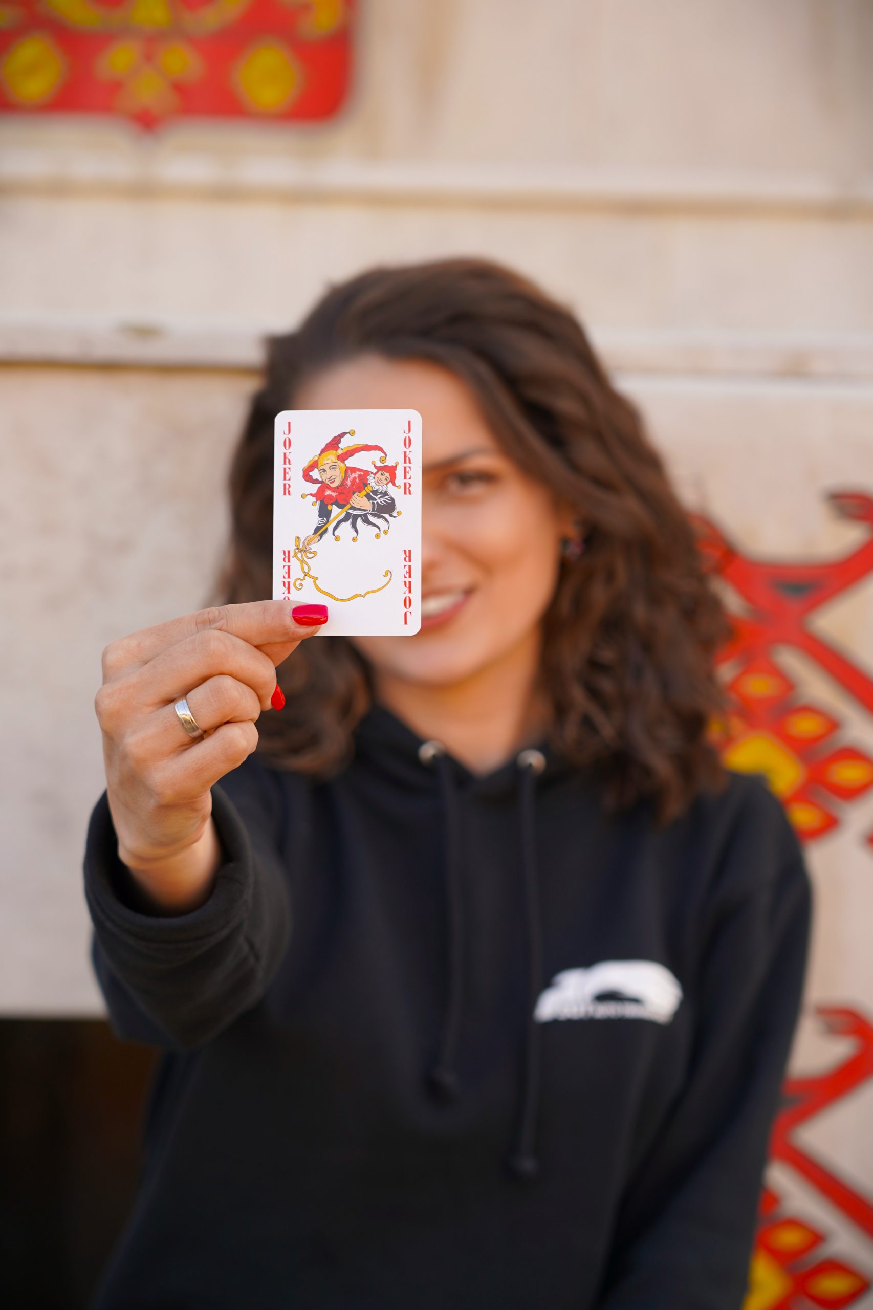 Докато Радина обиграно разбърква в ръцете си тестето карти, което сме предвидили за снимките, погледът ми попада на една, която притежава специални сили – когато участва в играта, всеки иска да я притежава. Задавам ѝ въпрос, а отговорът ѝ ме кара да се усмихна: