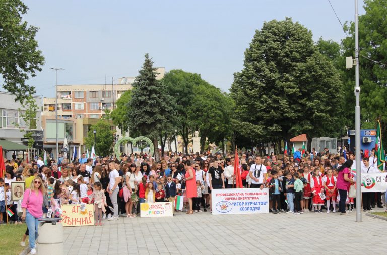 Честването на 24 май във Враца започна с празнично шествие, водено от над 70 ученици-отличници, носещи 25-метрово българско знаме.