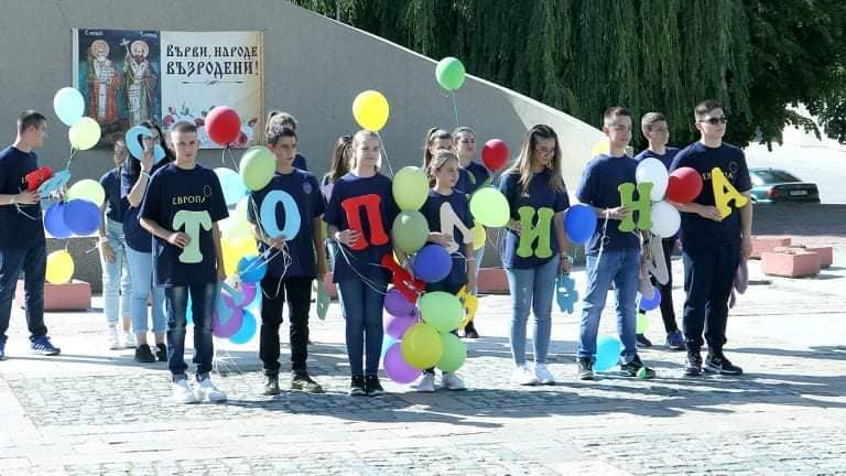 Кулминацията дойде накрая, когато под звуците на „Де е България”, младежите честитиха празника на импровизирано събралите се хора и пуснаха в небето балони с послание.