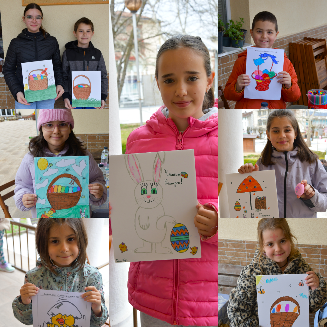 Малките участници рисуваха с флумастери, развихряйки въображението си върху белите листове. С усмивки и вълнение те създадоха пъстри великденски картини – всяка различна, всяка специална, всяка разказваща своя малка празнична история.